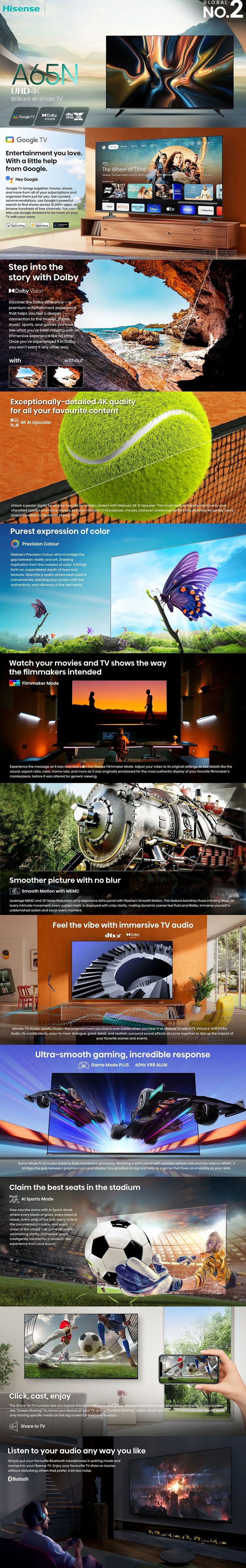 Hisense A65N 139.7 cm (55 inch) LED 4K Ultra HD Google TV with Dolby Vision & Dolby Digital